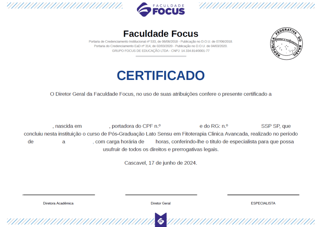 *O Título de Pós-Graduado em Fitoterapia Clínica Avançada tem, como pré-requisito, o diploma de graduação em qualquer curso superior.